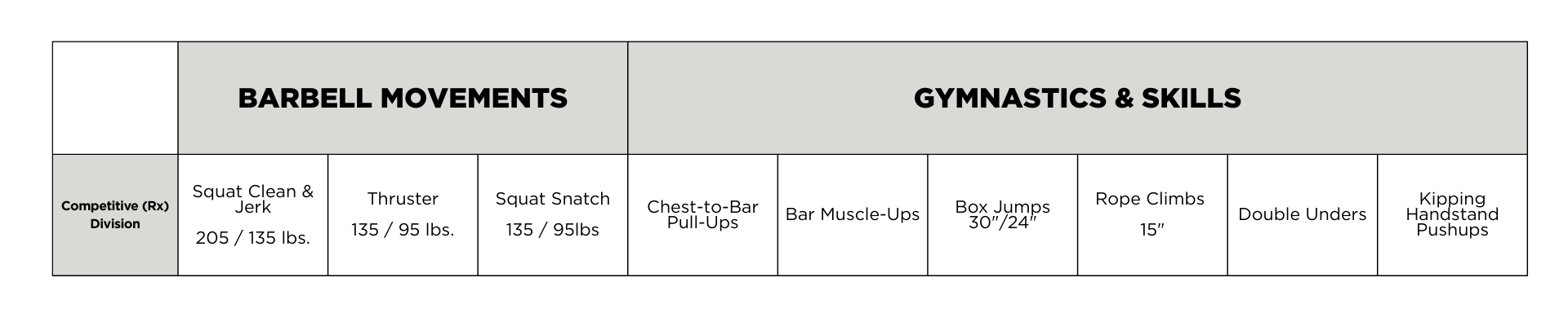 Have foundational experience performing barbell movements and scaled gymnastics movements